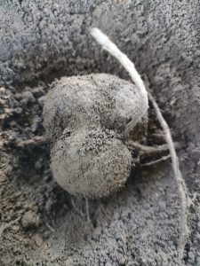 Ocurre que la trufa al encontrase en la rizosfera del árbol, en oportunidades, queda «atrapada» en las raíces y su «liberación» requiere un trabajo delicado para no dañar la trufa y minimizar el impacto en las raíces del árbol.